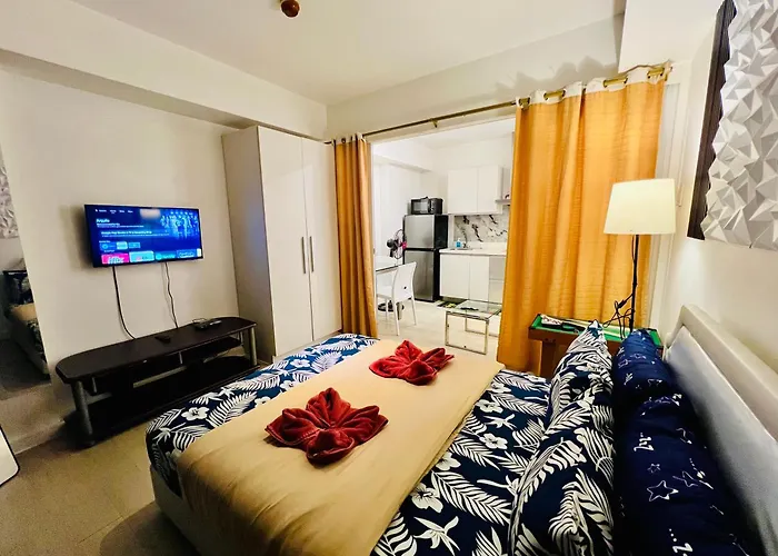 アッパー・ビカッタンから徒歩で25分に位置するベッドルーム1室のマニラ市Scr Azureinetflixibalconyigamesアパートメントでは、ビジネスにもレジャーにもWi-Fiを利用することができます。 SM City Bicutanほんの数分に位置するこの27m²のアパートで、顧客はプライベートなプールを利用できます。